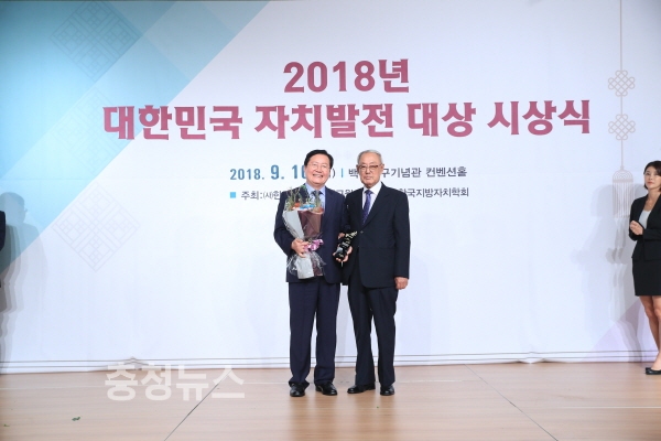 이날 시상식은 김안제 한국자치발전연구원장, 최진혁 한국 지방자치회장, 이달곤 전 행정안전부 장관 등이 참석한 가운데 국정 부문2명, 광역 부문8명, 기초부문 9명, 공무원 부문 2명이 수여됐다.