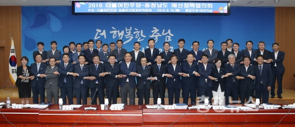 충남도(양승조 지사)는 10일 도청 대회의실에서 더불어민주당과 예산정책협의회를 개최하고, ‘더 행복한 충남’을 위한 14개 지역 현안과 내년 국비 확보가 필요한 40개 주요 사업에 대한 지원을 민주당에 요청했다.