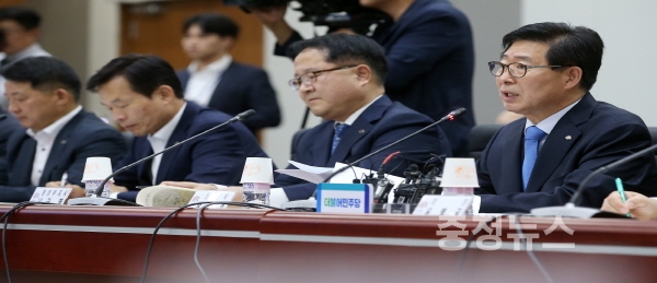 회의는 양 지사와 이해찬 대표 등의 인사말에 이어 도정 현안 보고, 토론 등의 순으로 진행했다.