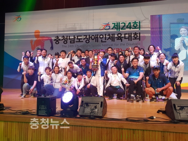 한편, 제24회 충남도장애인체육대회에는 충남도내 15개 시·군 선수 및 임원 4000여 명이 참여해 선의의 경쟁을 펼치며 장애에 대한 편견을 넘어 모두가 하나 되는 화합의 장이 연출됐다.