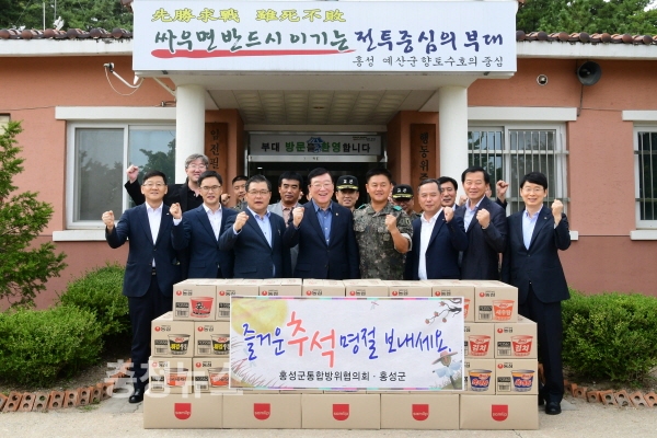 김석환 홍성군수와 홍성군통합방위협의회는 11일 민족 최대명절인 추석을 앞두고 향토방위에 전력을 다하는 군 장병과 의무경찰 등을 찾아 위문품을 전달하고 그동안의 노고를 위로하는 시간을 가졌다.