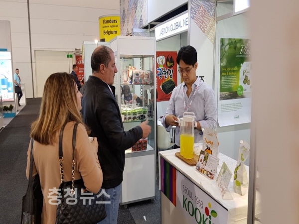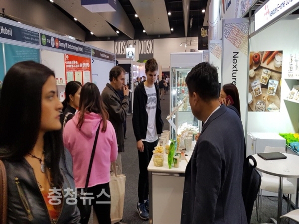 한국관은 수출업체 및 지자체 13개사가 참가하며 신선 과채류, 건강음료 및 각종 스낵 등을 중심으로 전문MC를 활용한 홍보 및 상품 시식·시음행사를 진행하고 있다.