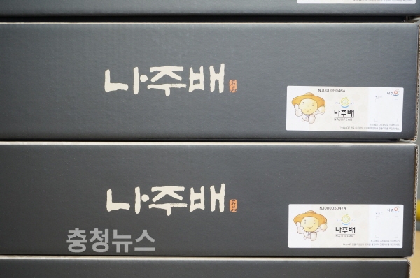 브랜드 도용 방지 보안 라벨이 부착된 나주배 포장박스