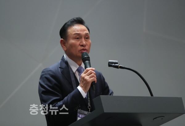 13일 오후 서울 워커힐 호텔에서 춤축제간의 상호 협력과 발전 방안을 모색하는 '국제춤축제연맹' 세계총회가 열려 구본영 총재(천안시장)이 인사말을 하고 있다.