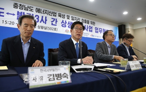 충청남도와 서부발전 등 발전3사는 상생협력사업을 위해 올해부터 2022년까지 5년 동안 총 100억원을 출연해 도내 에너지산업 육성과 일자리 창출을 위해 노력하기로 했다.