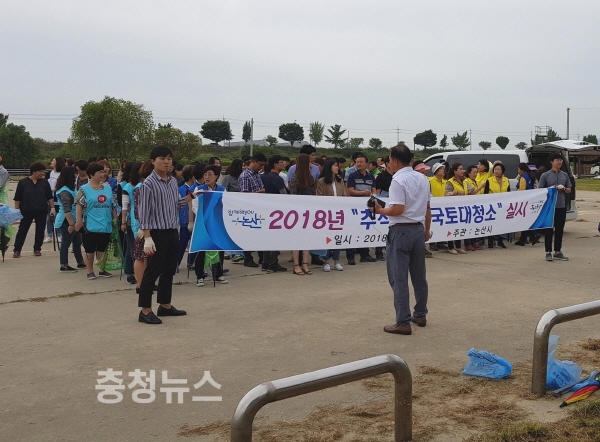 충남 논산시(시장 황명선)는 민족 고유의 명절인 추석을 앞두고 쾌적한 환경조성을 위해 지난 13일 논산대교 하상주차장 등 논산천변 일원에서 2018년 추석맞이 대청소를 대대적으로 실시했다.