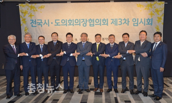 대전시의회 김종천 의장은 14일 라마다 프라자 수원호텔에서 열린 전국시도의회의장협의회 제3차 임시회에 참석해 상정된 안건을 처리하고 현안사안 등을 협의했다.