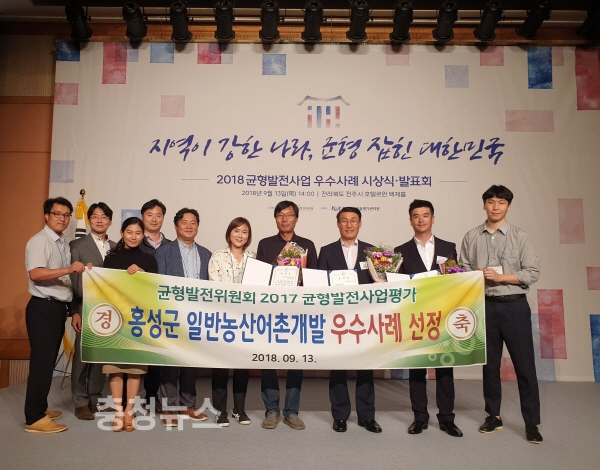 충남 홍성군의 일반농산어촌개발사업이 지난 13일 대통령직속 국가균형발전위원회가 주관한 2018년도 균형발전사업 평가에서 도내 15개 시·군 중 유일하게 전국 우수사례로 선정되어 기관표창을 수상했다.