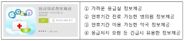 추석 연휴기간 필요한 정보 중 하나인 병원 진료와 약국 운영현황은 시 홈페이지에 게시할 예정이며, 이와 별도로 보건복지부에서 제공하는 ‘응급의료정보제공” 어플을 사용할 경우, 본인의 위치에서 가까운 병원이나 약국 찾기가 용이하므로 스마트폰 사용자는 반드시 설치해 활용하도록 권고했다.
