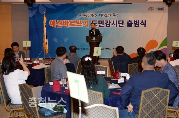 충남도는 ‘예산바로쓰기 도민감시단’이 18일 예산 덕산 리솜스파캐슬에서 출범식을 갖고, 본격 활동에 돌입했다고 밝혔다.
