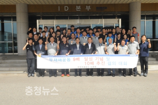 조폐공사는 18일 ID본부(대전시 관평동 소재)에서 조용만 사장과 김흥림 본부장 등 임직원들이 참석한 가운데 ‘무재해운동 9배 달성 기념 및 10배 추진 결의대회’를 가졌다.
