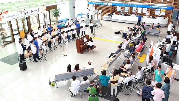 충남대병원합창단 ‘어울림’(단장 나명훈‧흉부외과 교수)은 19일 정오 관절염·재활센터 1층 로비에서 ‘제11회 Lunch Concert(런치 콘서트)-가을에 기대어’를 개최했다.