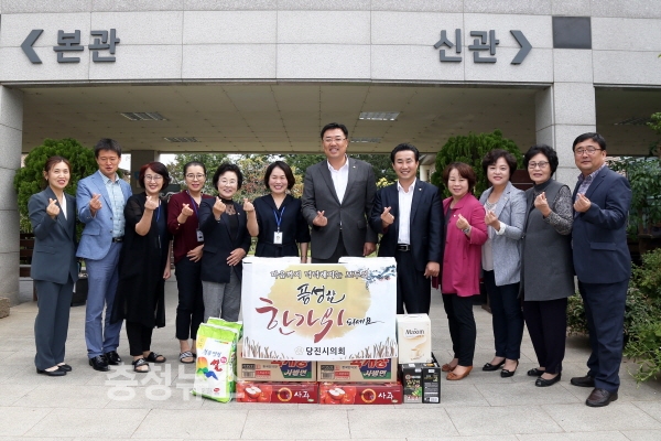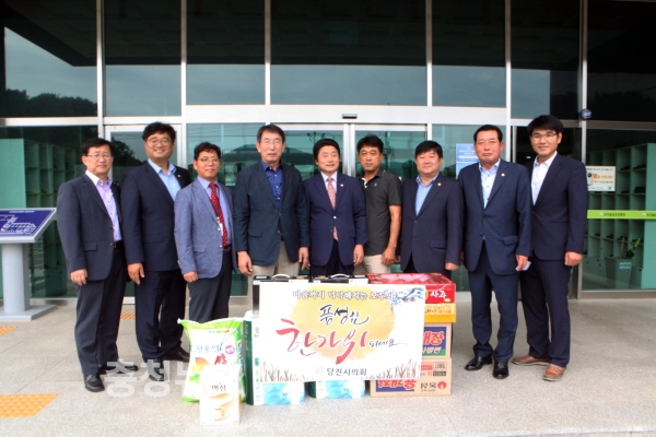 충남 당진시의회(의장 김기재) 의원 13명은 지난 19일 제1차 정례회를 마치고 민족의 대명절 추석을 맞이해 송악 실버프리 요양원과 고대 솔담 요양병원을 방문해 위문품을 전달하고 대화의 시간을 가졌다.