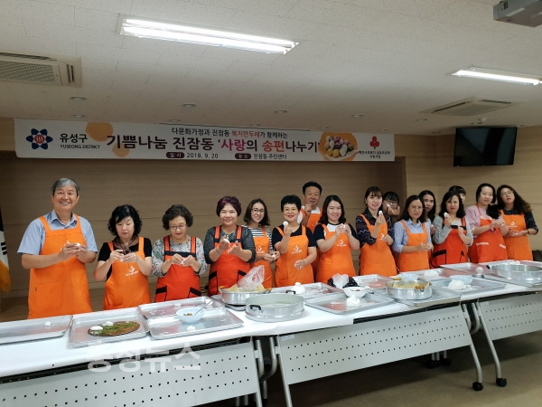 20일 진잠동주민센터(동장 강두식)에서 진잠동 복지만두레(회장 이승순)회원들이 다문화가정 봉사단과 함께 사랑의 송편나누기 행사를 펼쳤다.