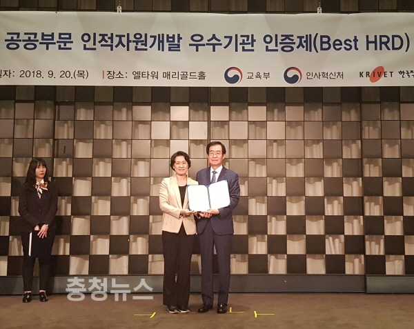 공공부문 인적자원개발 우수기관 인증 수여식에서 김병찬 인재개발원장(오른쪽
