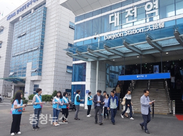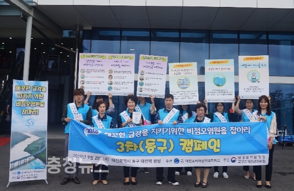 (사)대전소비자공익네트워크(회장 도정자)는 금강유역환경청(청장 김동진)의 후원을 받아 20일 대전역 서광장(동구 정동)에서 열차를 이용하는 승하객 500여명을 대상으로 ‘깨끗한 금강을 지키기 위한 비점오염원을 잡아라! 3차 동구지역 홍보 캠페인’을 개최 했다.