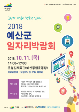 충남 예산군이 다음달 11일 윤봉길체육관에서 ‘2018 예산군 일자리박람회’를 개최한다.