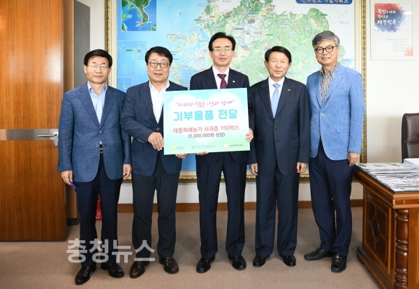 태풍 솔릭의 영향으로 대량 발생한 낙과로 판로발굴에 어려움을 겪던 사과 농가에서 만든 사과즙 150박스를 전라남도 지역 취약계층에게 기부했다.