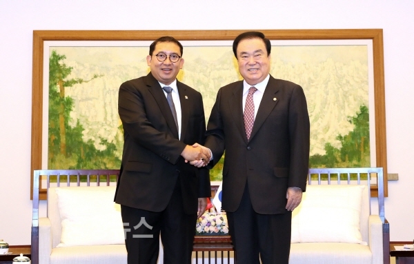 문희상 국회의장은 21일 오전 의장접견실에서 파들리 존(Fadli Zon) 인도네시아 하원부의장의 예방을 받았다.