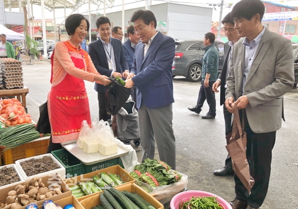 김홍장 당진시장 전통시장 장보기 행사 모습