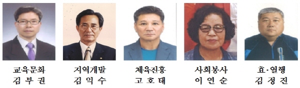 분야별 김부권, 김익수, 고호태, 이연순, 김정진 氏 선정