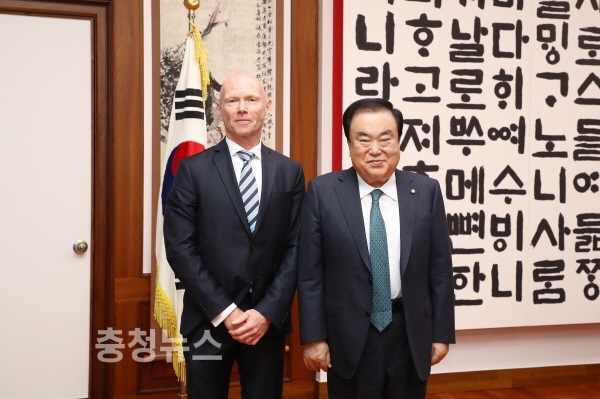 문희상 국회의장은 27일 오후 의장집무실에서 프로데 술베르그(Frode Solberg) 주한노르웨이대사의 예방을 받았다.
