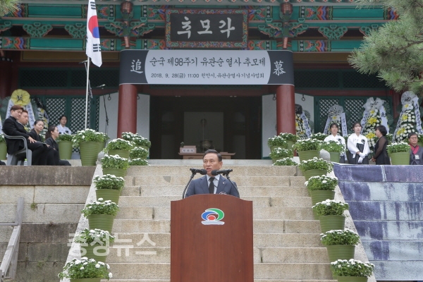 구본영 시장은 “유관순 열사를 비롯한 순국선열들이 조국을 위해 헌신했듯이 우리 모두가 하나 된 마음으로 힘을 모은다면 우리나라는 앞으로도 더 눈부신 발전을 이룰 수 있을 것”이라고 말했다.