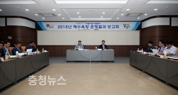 충남 태안군이 28일 군청 중회의실에서 관련 부서장과 해경 등 유관기관 및 번영회 관계자 등 50여 명이 참석한 가운데 가세로 군수 주재로 ‘2018. 해수욕장 운영결과 보고회’를 열고 금년도 해수욕장 운영 결과와 부서별 점검사항 및 보완점을 논의했다.