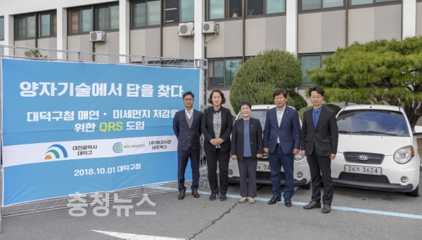구에 따르면 1일 구청 주차장에서 양자기술을 적용한 매연 및 미세먼지 저감장치인 ‘QRS(Quantum Recovery Solution)’를 공용차량 10대에 시험 장착하고 운행에 들어갔다.