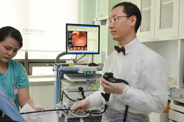 건양대병원 소화기센터 이태희 교수의 내시경 검사 모습.
