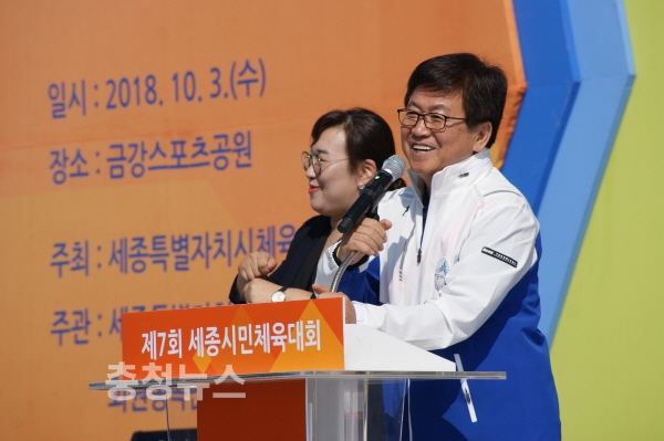 최교진 세종시교육감은 3일 ‘제7회 세종시민 체육대회“에서 축사를 통해 "세종시민이 행정수도 완성을 함께 다짐하고 결의하는 대회가 되기를" 소망했다.