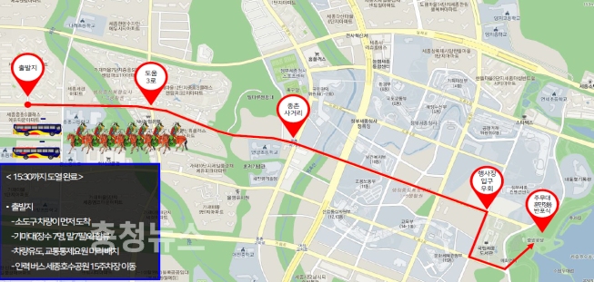 세종대왕 600주년 기념축하 행사로 세종대왕 어가행렬이 시민들의 기대를 모으고 있다. 어가행렬은 두 코스로 나눠 조치원구간(조천천~조치원여중, 13:30~14:20) 신도심구간(종촌고등학교~호수공원 16:00~17:30)에서 각각 진행된다.