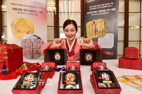 올해는 한글을 창제한 세종대왕의 즉위 600주년이 되는 해이다. 한국조폐공사(사장 조용만)는 이를 기념해 4일 조선시대 왕의 상징인‘세종시호금보’와, 세종대왕이 창제한 한글로 직접 지은 ‘월인천강지곡’기념메달 2종을 동시에 선보였다.