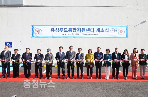 대전 유성구(구청장 정용래)는 4일 정용래 구청장을 비롯해 허태정 대전시장, 하경옥 유성구의회 의장, 구의원, 시의원, 지역 주민 등 200여명이 참석한 가운데 유성구 덕명동(수통골로55번길 190)에 조성한「유성푸드통합지원센터」개소식을 가졌다.