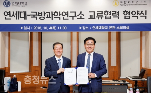 ADD와 연세대는 4일 연세대 본관에서 국방과학기술 및 방위산업 발전에 기여하기 위한 업무협약(MOU)을 체결했다.