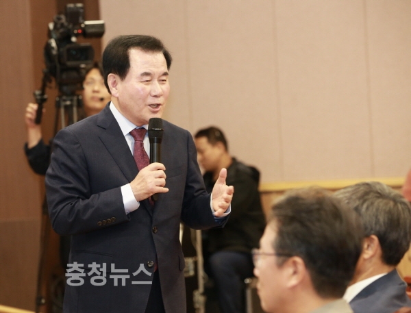 김지철 충남교육감이 찾아가는 학부모 공감 진로콘서트를 진행하고 있다.