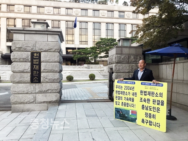 정상영 당진시의원, 당진땅 수호 헌법재판소 앞 1인 피켓시위 / 충청뉴스 최형순 기자