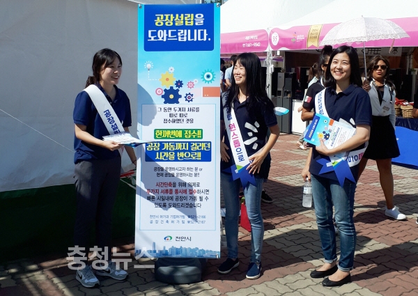 시는 용역업체와의 간담회 시 동시 설계진행 협조, 천안시기업인협의회 홈페이지 팝업 광고 게재, 흥타령춤축제 기간 중 기업홍보관 내 전단지 배포 등을 기업인과 시민들에게 공장설립 원스톱 서비스를 홍보했다.
