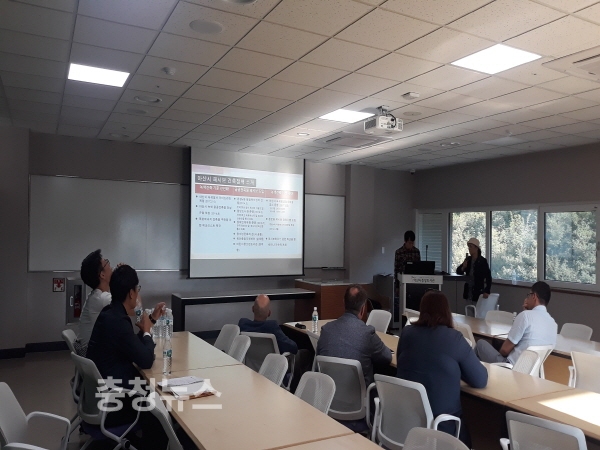 오세문 아산시 공공시설과 공공시설2팀장이 아산시 녹색건축 정책 및 패시브 건축 시공사례에 대하여 설명하고 있다