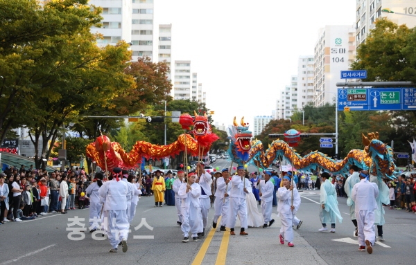 이어 엄사4거리에서 의장대시범과 올 축제에서 첫 선을 보이는 계룡시 숫용추, 암용추 설화를 재해석한 ‘쌍룡놀이’ 공연이 펼쳐져 축제의 열기를 한층 달궜다.