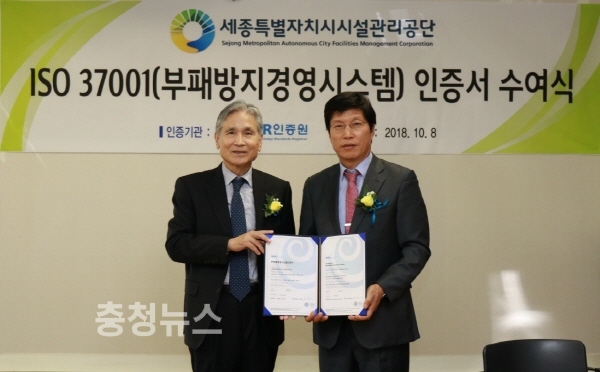 세종시설공단, 부패방지경영시스템(ISO 37001) 인증 획득 / 충청뉴스 최형순 기자