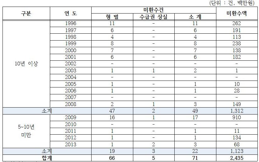 10일 국회 교육위원회 소속 더불어민주당 박경미 의원이 사학연금으로부터 제출받은 <사학연금 부정수급 5년 이상 미환수 현황>에 따르면, 사학연금이 5년 넘게 환수하지 못하고 있는 부정수급액은 24억3500만 원(71건)에 이르고 이중 10년이 넘은 미환수액도 무려 13억1200만 원(49건)에 달한다.