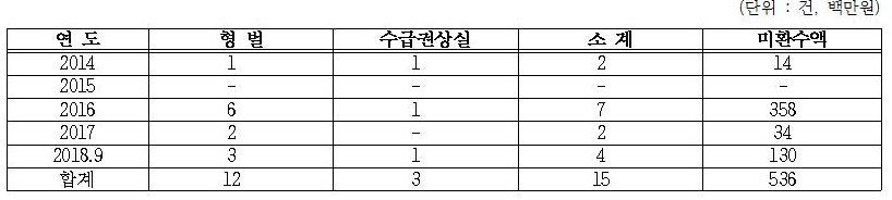5년 이상 환수하지 못한 71건 중 지금까지 단돈 1원도 환수하지 못한 경우도 전체의 81.7%(58건)이나 된다. 이에 부과된 연체이자는 38억5000만 원을 넘어섰다. 미환수액 24억3500만 원을 훌쩍 초과하는 금액이다. 미환수액에 연체이자까지 더하면 공단이 실제 환수해야하는 금액은 62억9000만 원에 달한다.