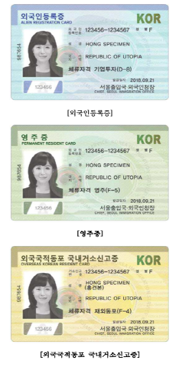 외국인등록증을 포함해 국내거소신고증, 영주증 등 3종이 이에 해당한다.