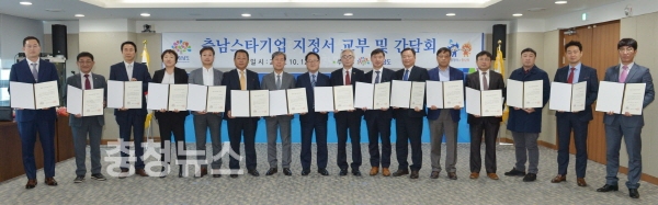 충남도는 올해 ‘충남 스타기업’으로 15개사를 선정하고, 12일 도청 중회의실에서 지정서 수여식을 개최했다.