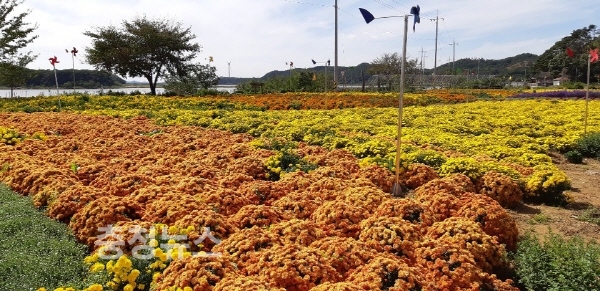 홍성군에 따르면 서부면 판교리 소재 ‘수룡동 꽃단지’에 국화를 비롯한 메리골드 등 다양한 가을꽃이 만개했다.