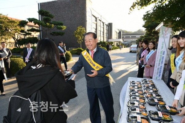 충남 예산군농업기술센터가 지난 11일 예산여자고등학교에서 ‘향토음식의 날’ 행사의 일환으로 지역농산물로 만든 아침간편식 시범급식을 추진했다.