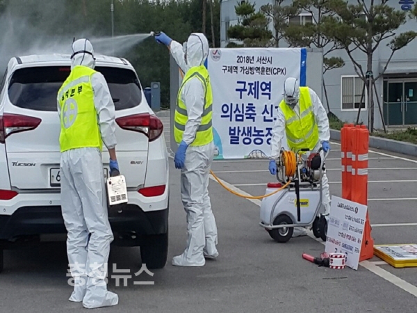 이번 훈련은 서산시 주관으로 구제역 발생시 초동방역 능력을 배양하고 구제역에 대한 경각심을 고취하기 위해 실시됐다.