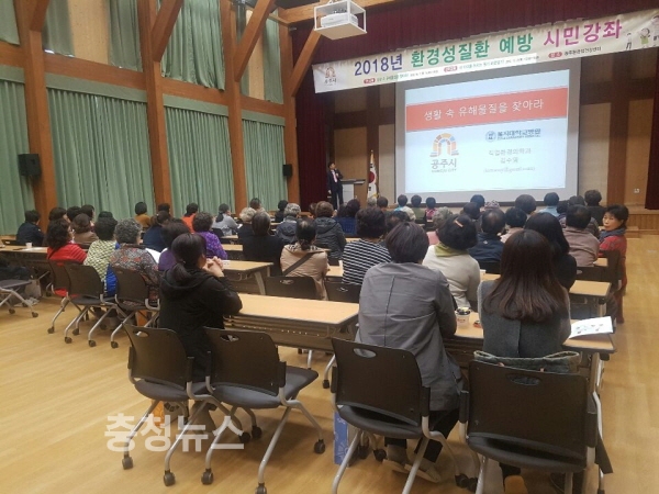 충남 공주시(시장 김정섭)가 운영중인 공주환경성건강센터(중부권 환경성질환 예방관리센터)에서 지난 11일 중부권 시민을 대상으로 환경성질환 예방 시민강좌를 진행했다.