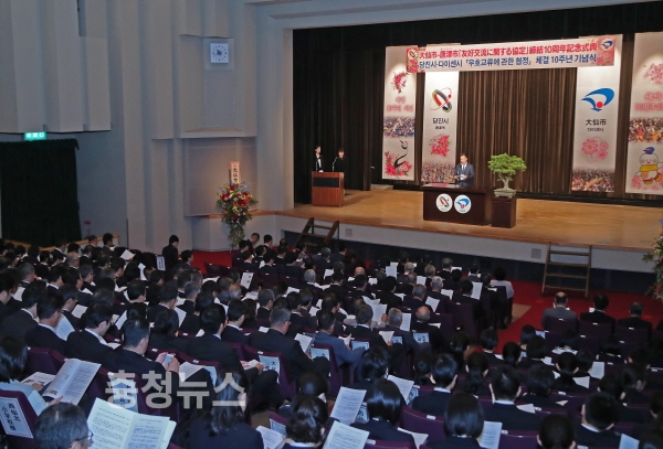 이번 기념식에는 지난해 당진에서 열린 교류 10주년 기념식 당시 오이마쓰 히로유키 시장의 방문에 화답해 김홍장 시장과 김기재 시의회 의장이 참석했다.
